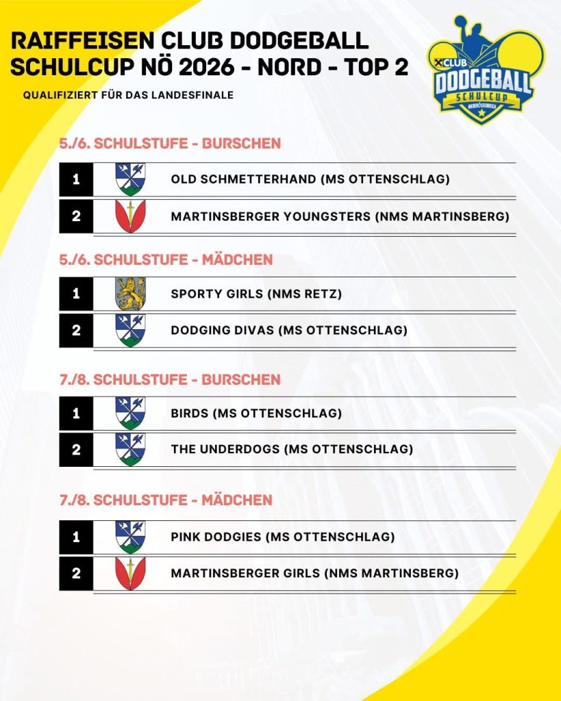 Am 24. und 25. März nahm unsere Schule mit drei Teams der Mittelschule Martinsberg am Dodgeball-Schulcup der Region NÖ Nord teil.